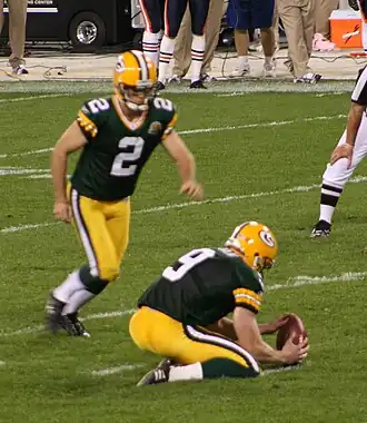 Deze speler wordt opgesteld achter de andere spelers en ontvangt de bal tijdens een fieldgoal van een andere speler (bijvoorbeeld een long snapper). De holder zit geknield op de grond en plaatst de bal met de puntzijde in de grond en houdt de bal met één of twee handen vast, zodat de kicker de bal kan trappen.