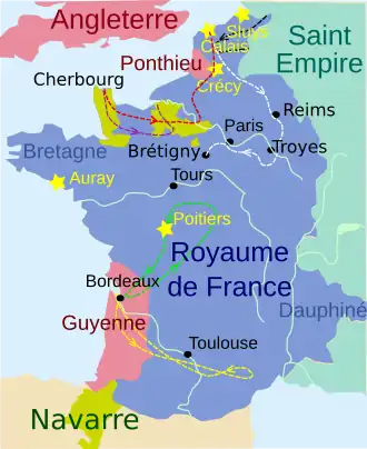 - ↑ John A. Wagner, Encyclopedia of the Hundred Years War, 2006, p. 29. Gearchiveerd op 31 juli 2023.
