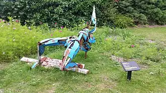 Er zijn drie artistieke kunstwerken te vinden aan de weg: