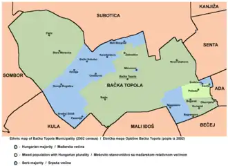 - ↑ Population by ethnicity – Bačka Topola. Statistical Office of the Republic of Serbia (SORS). Geraadpleegd op 8 January 2013.