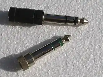 De aansluiting van een hoofdtelefoon op audioapparatuur gebeurt meestal met een plug. Er zijn twee standaardmaten, de 3,5 mm ('mini jack') en 6,3 mm diameter jackplug. De pluggen bestaan in mono- en stereo-uitvoering. Sommige, vaak iets goedkopere mp3-spelers hebben een 2,5 mm aansluiting. Voor deze spelers is er slechts een beperkt aantal hoofdtelefoons beschikbaar. Meestal moet er gebruikgemaakt worden van een verloopstekker van 2,5 naar 3,5 mm om toch van de hoofdtelefoon gebruik te kunnen maken.