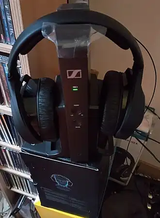 Er zijn draadloze hoofdtelefoons die radiografisch in verbinding staan met een basisstation dat op de audioapparatuur is aangesloten. De zenders van draadloze hoofdtelefoons die begin 21e eeuw gemaakt zijn mogen maximaal 10 mW aan vermogen hebben en zenden voornamelijk op de 863-864 MHz en 2,4 GHz (vooral digitale draadloze hoofdtelefoons). Deze hoofdtelefoons kunnen een bereik hebben van 30 tot 100 meter (muren en dergelijke verkorten deze afstand). Hoofdtelefoons die zich bevinden in het spectrum van de 800-900 MHz, kunnen storing van soortgelijke apparaten hebben, wat opgelost kan worden door een ander kanaal te kiezen. De coaxkabel van een satellietschotel (vooral als deze al wat ouder is) kan een stoorsignaal geven rond de 900 MHz. Aangezien de frequenties tussen de 863-864 MHz niet beschermd zijn, kan men buren die met b.v. een schotel storing veroorzaken op een draadloze hoofdtelefoon, niet aansprakelijk stellen. Het is een vrije frequentie, tot 10 milliwatt (mW). Een oplossing is dan een digitale hoofdtelefoon die in en rond de 2,4 GHz ontvangt en zendt. Eenvoudigere draadloze hoofdtelefoons werken vaak op infrarood en hebben meestal een slecht geluid, vooral als men beweegt of als de ontvanger niet meer in het bereik is van de infrarode straal.