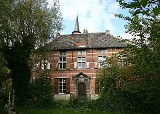 Het is een bakstenen gebouw met zandstenen speklagen. De toegangspoort in de symmetrische gevel is in barokke trant uitgevoerd. Het interieur toont originele balklagen en twee barokschouwen. Op de bovenverdieping bevindt zich een schouw met laatgotische stijlkenmerken.