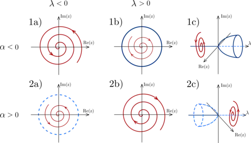 Het gedrag van de Hopf-bifurcatie wordt beschreven met de normaalvorm: