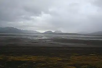 - Skeiðarárjökull, met de Skeiðará als rivier, die breedt uitwaaiert over de Skeiðarásandur