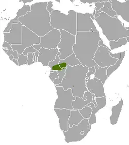 De soort komt voor in het noorden van Angola, Congo-Brazzaville, Congo-Kinshasa, Gabon, Kameroen en de Centraal-Afrikaanse Republiek.