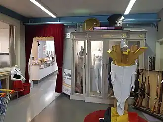 Achter deze toog begonnen de rekken met kostuums. De houten rekken zelf zijn opgebouwd als een dubbel-galg-systeem, zodat de vloer vrij was om gekuist te kunnen worden, diezelfde opbouw werd gebruikt op het tweede verdiep om -hoofdzakelijk- de uniformen op te bergen en kreeg zodoende de naam van soldatenkamer.