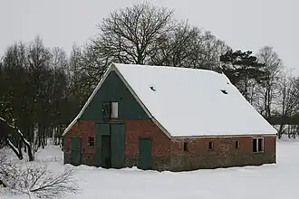 Aan de achterzijde van het huis was een stal voor enkele koeien, geiten en het paard. Daar was ook een keuken van drie bij vijf meter. In de keuken stond een fornuis waarop gekookt werd, dit werd gestookt met turf. Naast de keuken was een bijkeuken, hier stonden de emmers met water voor de huishoudelijke klussen. Dit water werd uit de nabijgelegen put gehaald. In deze ruimte werd er ook gekarnd. Er was geen elektriciteit of stromend water. Voor verlichting werd gebruikgemaakt van olielampen. Naast het huisje stond een poepdoos met daaronder een beerput waarin de ontlasting opgevangen werd.