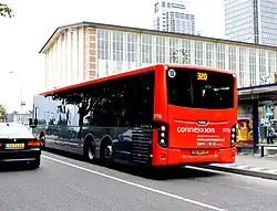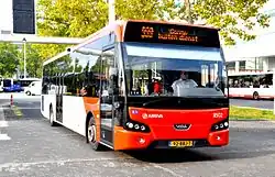 Sommige bussen reden ook met de huisstijl van andere vervoerders zoals BBA en De Lijn. Hier een ex-Limex bus in de BBA huisstijl (deze bus reed op de foto al voor opvolger Veolia Transport).