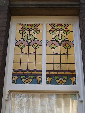 Het gehele perceel wordt aan de voorzijde afgeschermd door een smeedijzeren hekwerk met zweepslag-motief uit de art nouveau. Aan de westzijde is gedeeltelijk een bakstenen muur opgetrokken terwijl de oostkant vooral een natuurlijke begroeiing én een muur als erfafscheiding heeft. Aan deze zijde prijkt op de gevel het straatnaambord Gele Rijersplein, waarvan de naam verwijst naar de in 1793 opgerichte Nederlandse Rijdende Artillerie. Op dit plein stond voorheen het postkantoor, gebouwd rond 1892.