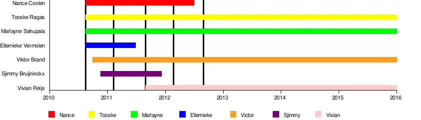 | Presentatie | Kees Tol (2017) Nance Coolen (2010-2012) Tooske Ragas (2010-2012) Ellemieke Vermolen (2010-2011) Viktor Brand (2010-2012,2017) Marlayne Sahupala (2010-2017) Sjimmy Bruijninckx (2011-2012) Vivian Reijs (2011-2012) Mirella van Markus (2017) Evelien de Bruijn (2017) Airen Mylene (2017) | |||