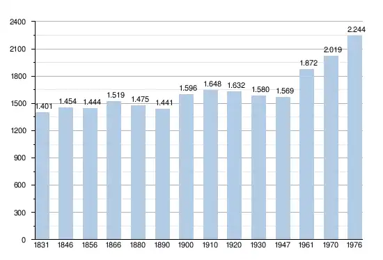 - Bronnen:NIS, Opm:1831 tot en met 1970=volkstellingen, 1976= inwonersaantal op 31 december