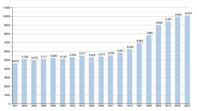 Alle historische gegevens hebben betrekking op de huidige gemeente, inclusief deelgemeenten, zoals ontstaan na de fusie van 1 januari 1977.