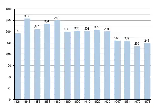 - Bronnen:NIS, Opm:1831 tot en met 1970=volkstellingen, 1976= inwoneraantal op 31 december