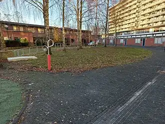 In de groenvoorziening van het plein staan twee vormen van “kunst in de openbare ruimte” waarvan geen historie terug te vinden is. Eén daarvan is een hekwerk, waarin het woord Future (het heet hier de F-buurt) te lezen is; de objecten doen denken aan de duikelrekken van Aldo van Eyck. De andere kunstvorm bestaat uit twee delen, het zijn twee gecombineerde spreek- en luisterobjecten, die vermoedelijk met elkaar in verbinding staan, zodat je op het plein kan praten zonder dat iedereen hoeft mee te luisteren.