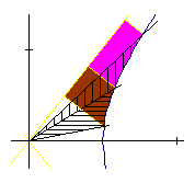 Wanneer twee lijnen elkaar snijden in de oorsprong is de hyperboolhoek tussen die lijnen tweemaal de oppervlakte begrensd door de lijnen en de hyperbool .
