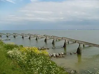 Behalve brugpijlers worden soms ook dammen en dijken beschermd met ijsbrekers. Dat kan noodzakelijk zijn bij grote wateroppervlakken zoals het IJsselmeer, waar kruiend ijs een bedreiging vormt voor de dijken en de daarop gebouwde huizen.