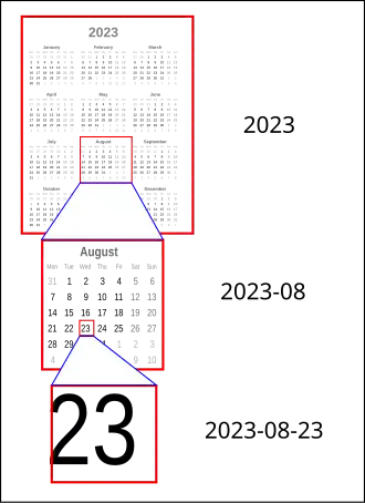 Los van de gebruikte notatie zijn de dag, de maand en het jaar bij ISO 8601 overeenkomstig de proleptische gregoriaanse kalender. Er is daarmee ook een jaar 0 en er zijn negatieve jaartallen. Bij (deels) negatieve jaartallen is er echter geen gemakkelijk leesbare notatie waarbij de chronologische volgorde van tijdsaanduidingen overeenkomt met de lexicografische volgorde.