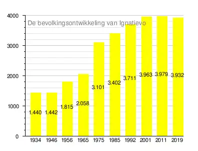 De bevolking van Ignatievo is in de 21e eeuw vrij stabiel en schommelt rond de 3.950 personen. De plaats heeft een gemengde bevolking: er wonen zowel Bulgaren, Turken als Roma, maar ook Vlachen, Russen en Armenen.