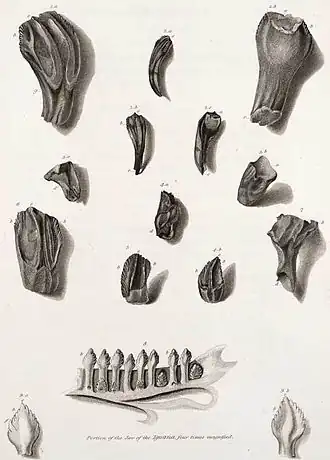 - ↑ Norman, D.B., 1993. Gideon Mantell's Mantelpiece: the earliest well-preserved ornithischian dinosaur. Modern geology 18: 225-245.