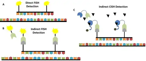 - ↑ a b O'Connor, Clare, Fluorescence In Situ Hybridization (FISH). Nature Education.