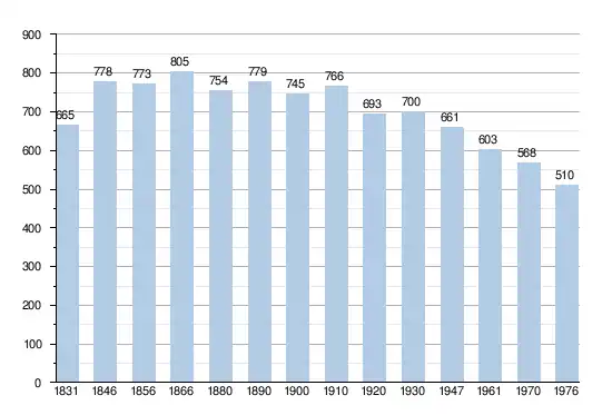 - Bronnen:NIS, Opm:1831 tot en met 1970=volkstellingen, 1976= inwoneraantal op 31 december