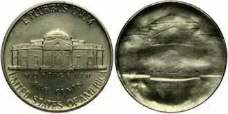 De afbeelding in spiegelbeeld heet incuse (Engels: intaglio, Frans: en creux), letterlijk "ingestanst". De beeldenaar is niet alleen in spiegelbeeld, maar het reliëf is andersom: de beeldenaar ligt niet op de munt, maar is als holte in de munt geslagen.