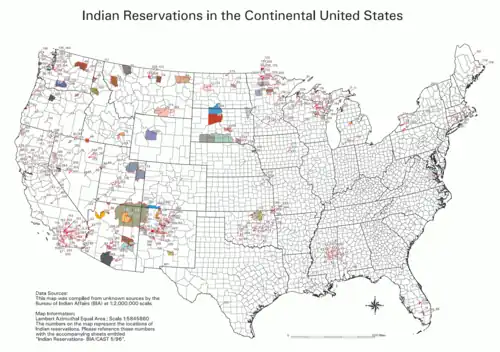De reservaten werden vooral in de negentiende eeuw ingesteld als gevolg van de kolonisering van Noord-Amerika. De meeste en ook de grootste bevinden zich in het westen van de Verenigde Staten, in de bergachtige staten Arizona, Utah, Montana en South Dakota.