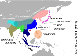 | Verspreidingsgebied van de Indiase junglekraai en diverse andere soorten. | |||||||||||||