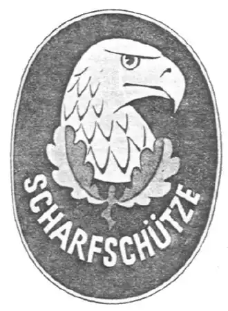 - Dit artikel of een eerdere versie ervan is een (gedeeltelijke) vertaling van het artikel Scharfschützenabzeichen op de Duitstalige Wikipedia, dat onder de licentie Creative Commons Naamsvermelding/Gelijk delen valt. Zie de bewerkingsgeschiedenis aldaar.