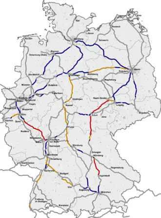 Vanaf 1993 reden de treinen op deze drie ICE-lijnen treinen niet alleen maar naar Hamburg (of Bremen) want vanaf dat jaar reed, in plaats daarvan, een ICE vanaf Göttingen om de twee uur naar Berlijn. Tot 1998 verliep de reis per ICE tussen Gottingen en Berlijn volledig over bestaande, niet-hsl-sporen, maar vanaf 1998 maakte de ICE 1 tussen Oebisfelde en Berlijn elk uur per richting gebruik van een nieuwe hogesnelheidslijn. Op de spoorlijn tussen Gottingen en Fulda (via Kassel-Wilhelmshöhe) waren tot 2017 vrijwel alle ICE 1-treinen te zien omdat de drie ICE-lijnen waar ze werden ingezet daar gezamenlijk liepen.