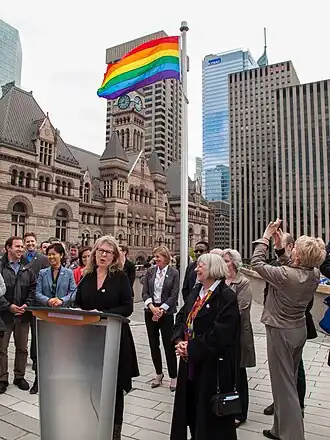 Holebi-organisatie çavaria roept sinds enige jaren alle Vlaamse en Brusselse gemeentes op om op de IDAHOT een regenboogvlag uit te hangen. In 2017 gaven waarschijnlijk 325 van de 327 gemeentes daar gehoor aan.[8] Nederlandse gemeentes en provincies hangen op de Coming-Outdag op 11 oktober een regenboogvlag uit.