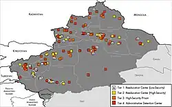 - Dit artikel of een eerdere versie ervan is een (gedeeltelijke) vertaling van het artikel Xinjiang internment camps op de vereenvoudigd Engelstalige Wikipedia, dat onder de licentie Creative Commons Naamsvermelding/Gelijk delen valt. Zie de bewerkingsgeschiedenis aldaar.