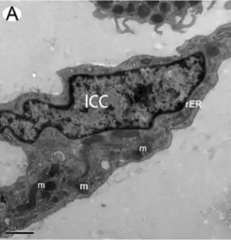 - ↑ Yu W, Zeidel ML, Hill WG (2012) Cellular Expression Profile for Interstitial Cells of Cajal in Bladder - A Cell Often Misidentified as Myocyte or Myofibroblast. PLoS ONE 7(11): e48897. https://doi.org/10.1371/journal.pone.0048897