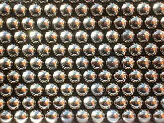 Als de afstand tussen de metaalatomen in het rooster gelijk is aan , dan bevinden de vier metaalatomen zich op een afstand van de kleine holten met de tetraëdrische symmetrie. De zes metaalatomen bevinden zich op een afstand van de grote holte met de octaëdrische symmetrie.