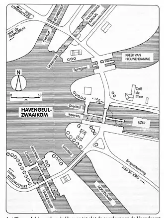 Om het bruggenhoofd van Nieuwpoort, Noord en Oost van de IJzer, te verstevigen wordt beslist de Nieuwland polder Noord van de IJzer, tussen Nieuwpoort en de Uniebrug, onder water te zetten. De avond van 21 oktober openen Belgische soldaten de overlaten van de Kreek van Nieuwendamme (het Springsas, ook Scheursas genoemd). Hendrik Geeraert is daarbij behulpzaam. Een strook land tussen de rechteroever van de IJzer en het kanaal van Plassendale komt over een lengte van 3 km onder water.