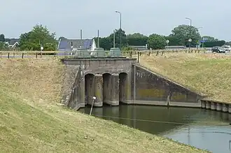 Bij de vestingwerken in Asperen is een inundatiesluis in de vaarweg van de Linge opgenomen, die daarmee kan worden afgesloten en bij Tiel via het Inundatiekanaal met rivierwater van de Waal kan worden gevuld.