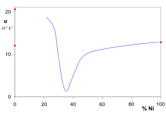 Het was in 1896 al duidelijk dat er een verband bestond tussen de thermische uitzetting en het ferromagnetisch gedrag. Als Guillaume verschillende nikkel-ijzerlegeringen met elkaar vergeleek, bleek de temperatuur of de samenstelling waarbij de legering nog net magnetisch was te maken, overeen te komen met de toestand waarbij de uitzettingscoëfficiënt (α) het snelst veranderde met de temperatuur.