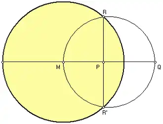 - Snijdt de twee cirkels, noem de snijpunten R en R',