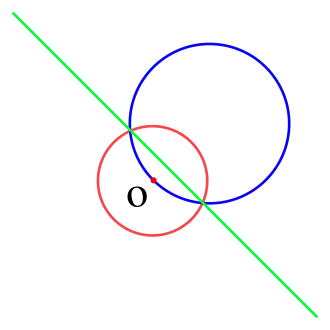 - Het middelpunt van een cirkel, het middelpunt van zijn inverse en M liggen op één lijn, meer specifiek is M een gelijkvormigheidscentrum van de twee cirkels.