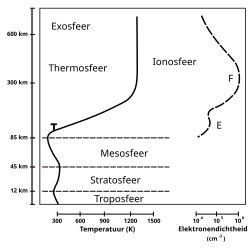 De ionosfeer wordt over het algemeen opgedeeld in drie, soms vier lagen :