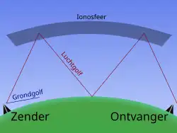 - De F-laag (Appleton-laag) is de bovenste en meest reflecterende laag en dus verantwoordelijk voor de mogelijkheid om voorbij de horizon toch radiosignalen te ontvangen. Voornamelijk kortegolfsignalen worden door deze laag gereflecteerd. Deze laag is dikker als de straling van de zon er overdag mee in aanraking komt. Daarnaast wordt bij daglicht de F-laag in twee delen gescheiden; de F1- en F2-laag. F1 heeft een gemiddelde hoogte van ongeveer 225 km en F2 een gemiddelde hoogte van 400 km.