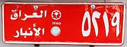 De kentekenplaat is rechthoekig van vorm en gemaakt van aluminium . Op de kentekenplaten staat Arabische tekst en "IRAQ" in het Latijns alfabet .