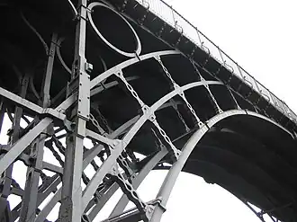 Darby diende voor het gieten van het benodigde ijzer de smeltoven van zijn bedrijf te vergroten. In totaal werd 379 ton ijzer gebruikt en werden meer dan 800 onderdelen gegoten in twaalf verschillende basisvormen. De grootste waren de half-ribben met een lengte van 70 voet en elk 5,25 ton zwaar. Voor het samenvoegen van de onderdelen werd vooral gebruikgemaakt van technieken die gangbaar waren in de houtbewerking zoals de zwaluwstaartverbinding. Bouten werden gebruikt om de halfribben bovenaan de boog aan elkaar te bevestigen.