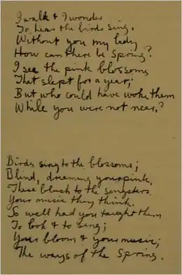 Inmiddels was Rosenberg ook gedichten gaan schrijven en in 1912 publiceerde hij in eigen beheer het dichtbundeltje Night and Day, sterk beïnvloed door John Keats en Percy Bysshe Shelley. In 1915 volgde de gelijksoortige publicatie Youth, bekostigd door Sir Edward Marsh, redacteur van het tijdschrift “Georgian Poetry”, waarin ook een fragment van Rosenbergs toneelstuk in verzen Moses werd afgedrukt.