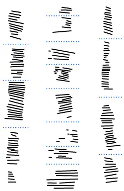De kerven zijn aangebracht in 3 kolommen: