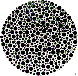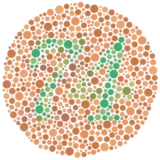 Aan de proefpersoon worden plaatjes met gekleurde stippen getoond. Stippen van gelijkaardige kleuren zijn in cijfers geordend. Kan de proefpersoon de cijfers onderscheiden, dan is hij niet kleurenblind.