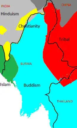 - Westelijkste delen van Myanmar, vlak bij de grens met Bangladesh (Rohingya).