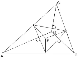 - Neem de voetpuntsdriehoek van P. De lijnen door de hoekpunten van ABC loodrecht op de corresponderende zijden van de voetpuntsdriehoek snijden elkaar in de isogonaal verwante van P,