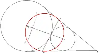 - Als de lijn de omgeschreven cirkel raakt een parabool,